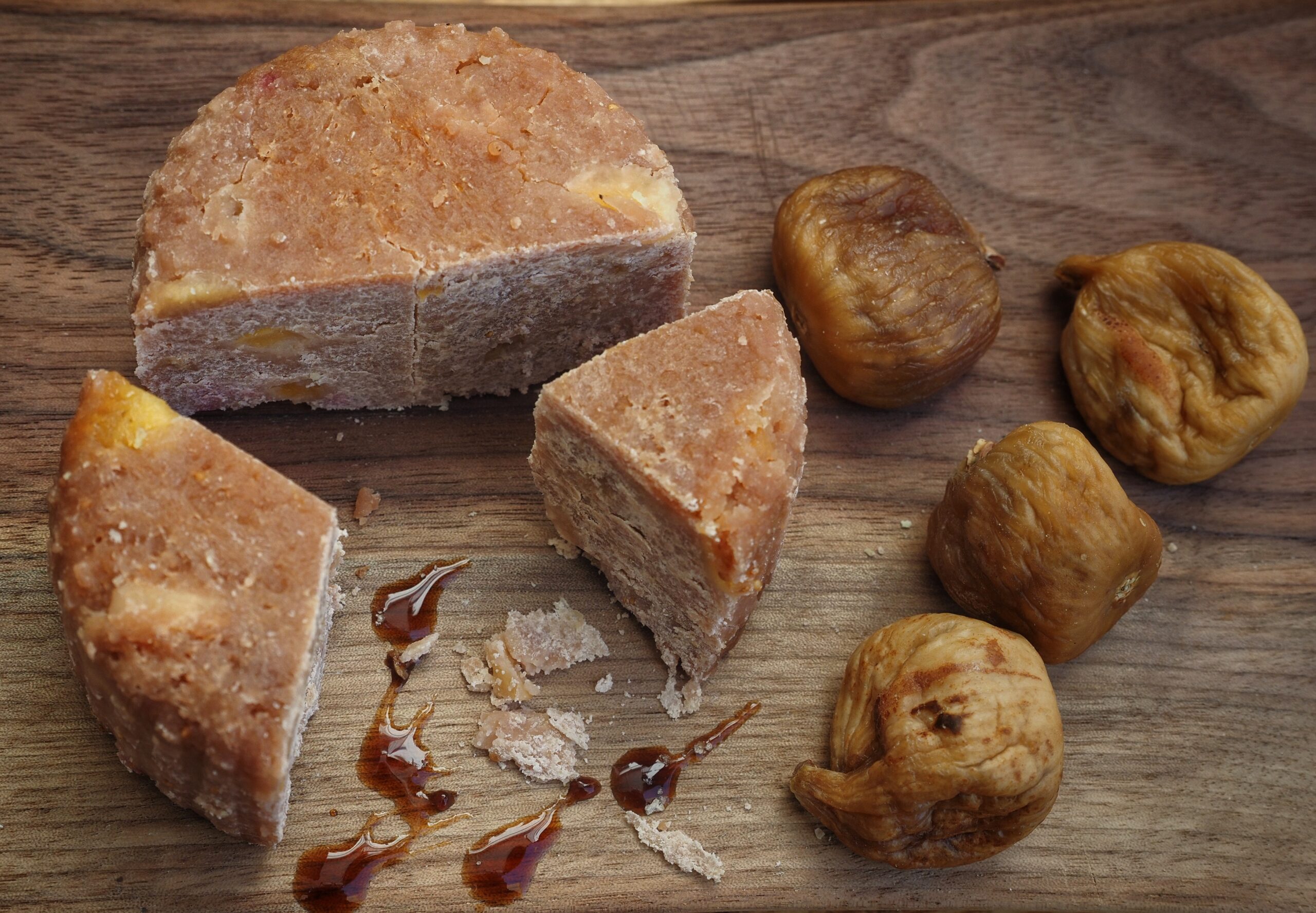 Ingredienti: acqua, olio di cocco deodorato bio, farina di ceci, amido di mais, fecola di patate, lievito alimentare in scaglie, aromi naturali, fichi secchi, aceto balsamico sale da cucina, acido citrico.